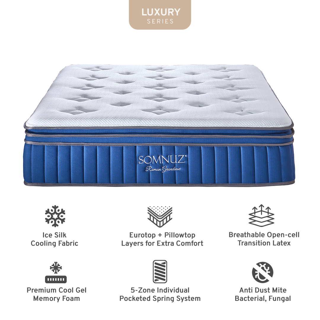 Crafted to perfection, Somnuz® Roman Grandiose combines luxury with Tencel™ Cooluxe™ Fabric technology to provide you with nights of cool & refreshing rest.
